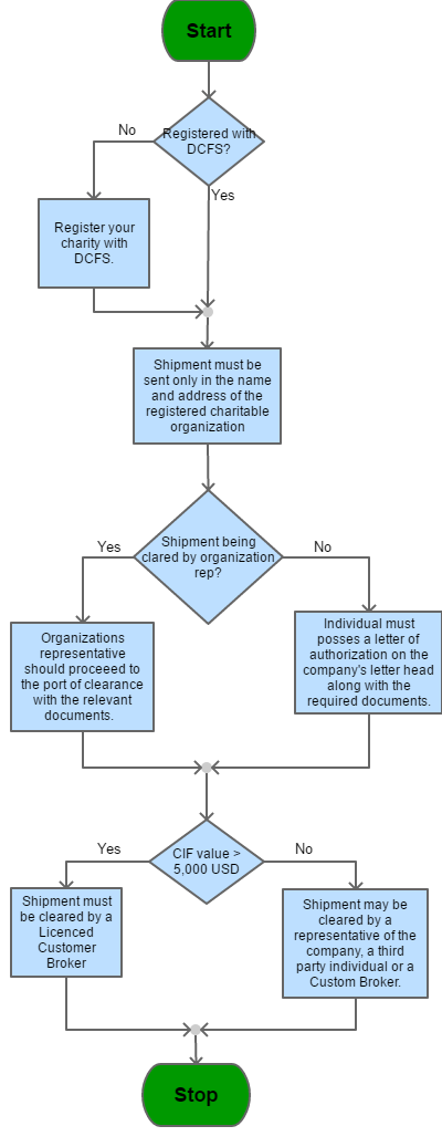 If applicant is registered with Department of Cooperative and Friendly Societies (DCFS) then : (i) Shippment must be sent only in the name and address of the registered charitable organization If applicant is not registered with Department of Cooperative and Friendly Societies (DCFS) then : (i) Register your charity with DCFS