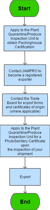 In addition to receiving the packinghouse certification letter to present to JAMPRO, visit jexporter.com or the JAMPRO offices and register to become an exporter. The registration process usually takes five to ten days | ||