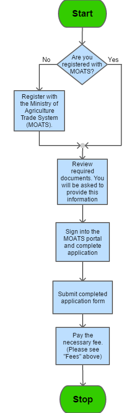 If not registered with MOATS then: (i) Register with the Ministry of Agriculture Trade System (MOATS) |
